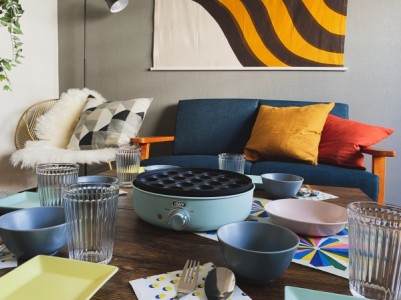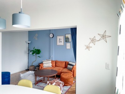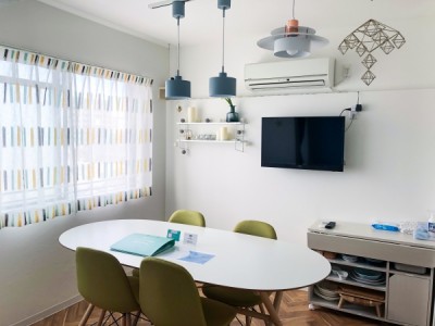 - ミーティングやワークショップにも使える大きなテーブルスペースとソファで寛げるリビング風スペースで多用途に対応可能